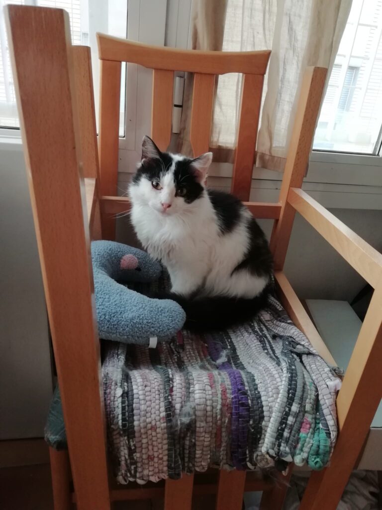 Príncipe es un gato que estaba en una colonia y estaba en muy mal estado, cojeaba y babeaba mucho. Conseguimos encontrar una casa de acogida para él y ahora está recuperándose y poniéndose fuerte.